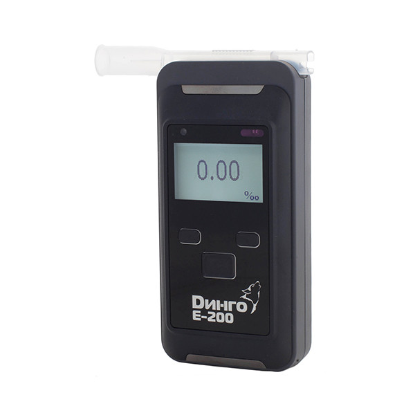 Алкотестер Динго Е-200 (В) предназначен для предварительного контроля состояния алкогольного опьянения и измеряет концентрацию паров этанола в выдыхаемом воздуха. Используется как для профессионального измерения в предрейсовых и пред.сменных осмотрах сотрудников, так и для проведения медицинского освидетельствования и освидетельствования в ГИБДД . Является портативным автоматическим прибором циклического действия. Благодаря встроенному электрохимическому датчику анализ воздуха проводится с высокой точностью, избирательностью и стабильностью показаний. Работа полностью автоматизирована, микропроцессор контролирует все этапы выполнения измерения. Продувка осуществляется с мундштуком-воронкой, с одноразовым мундштуком и без него. Алкотестер имеет режимы активного теста (с мундштуком) и пассивного теста вручную (с мундштуком или мундштуком-воронкой). Снабжен системой контроля выдоха с датчиком давления. На лицевой панели расположены графический дисплей с подсветкой, кнопки вкл./выкл. и перемещения по меню. Меню анализатора на русском языке и защищено ПИН-кодом при входе. В верхнем торце анализатор оснащен выемкой для мундштука, который размещается как в левосторонней, так и в правосторонней ориентациях для удобства оператора. Встроенное ПО обеспечивает возможность массового измерения паров этанола в выдыхаемом воздухе с отображением результатов на дисплее. Внутренняя память хранит до 500 измерений. Данная модель также подключается по Bluetooth к мобильным устройствам через специальное приложение для фиксирования результатов. Для экономии энергии анализатор автоматически выключается через 15 секунд при отсутствии работы. Питание осуществляется от 2-х батареек типа АА. Имеется ремешок на руку и пластиковый кейс для транспортировки и хранения прибора